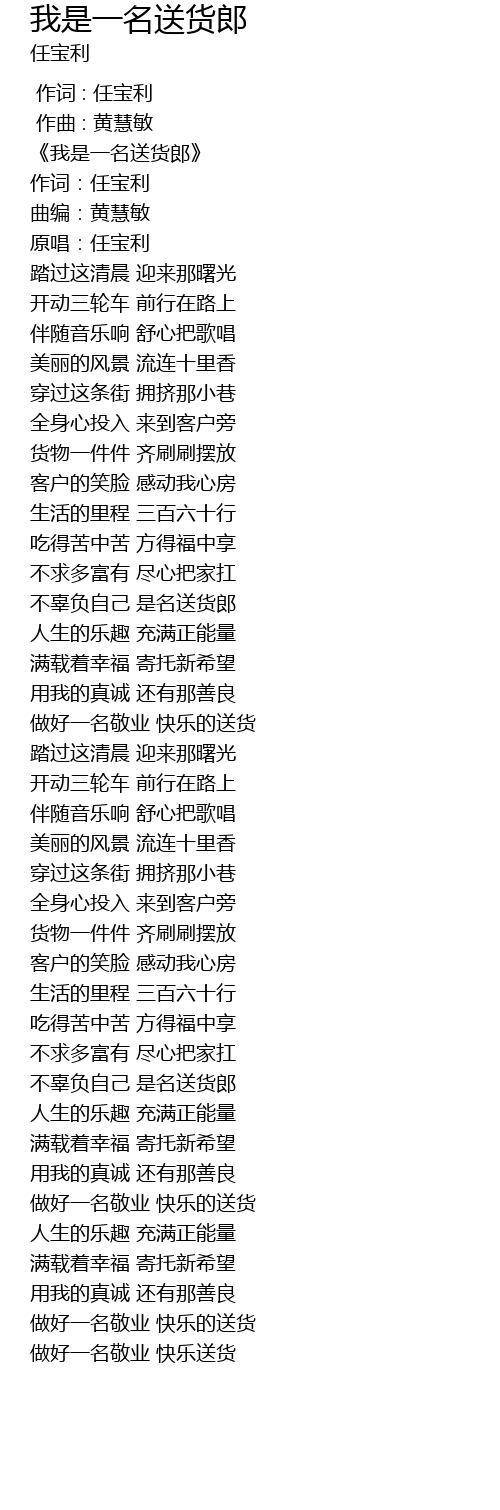 | [01:46.691] | 做好一名敬业 快乐的送货 |