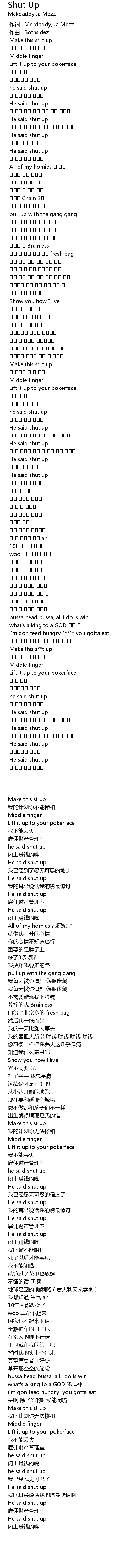 | [00:00.000] | 作词 : Mckdaddy, Ja Mezz |