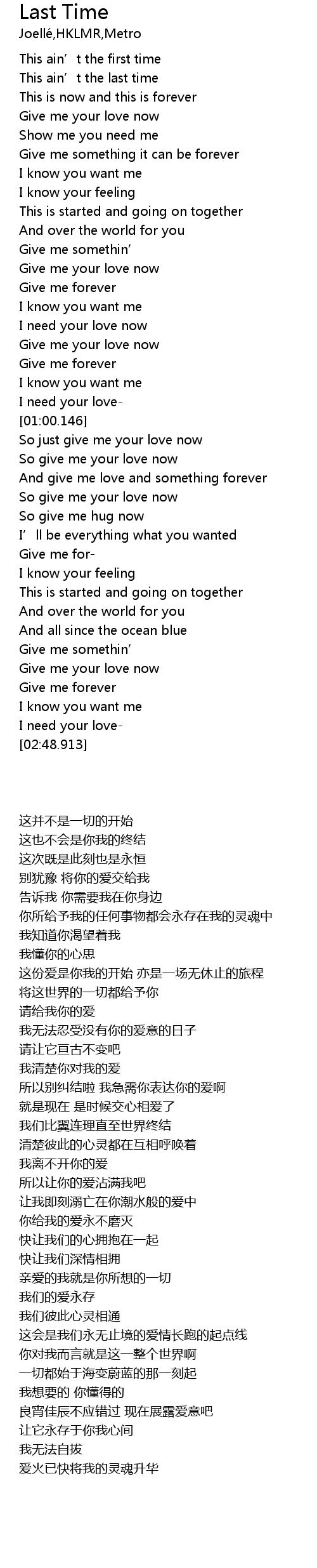 | [02:10.775] | So give me your love now |