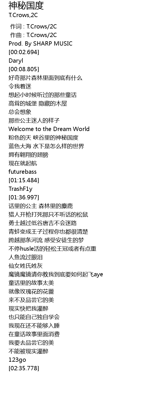 | [00:00.000] | 作词 : T.Crows/2C |