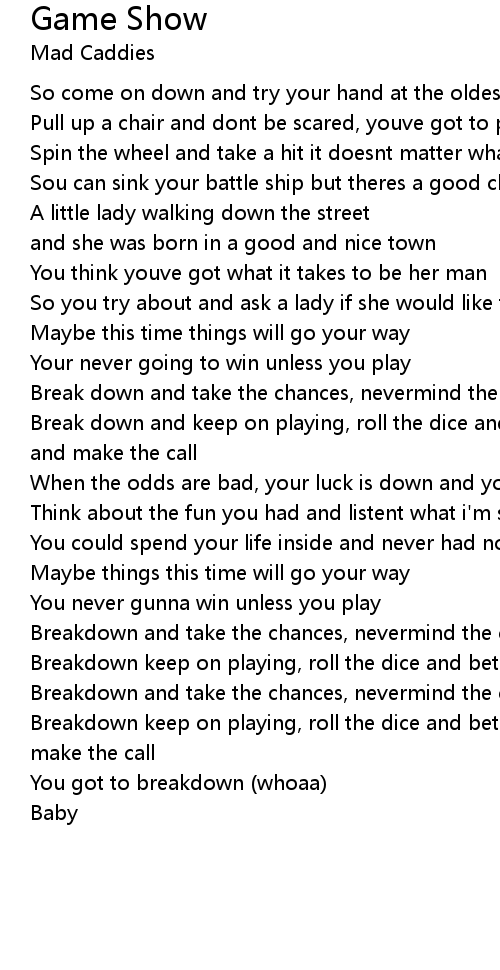 Breakdown keep on playing, roll the dice and bet it all, put a quater in and make the call |