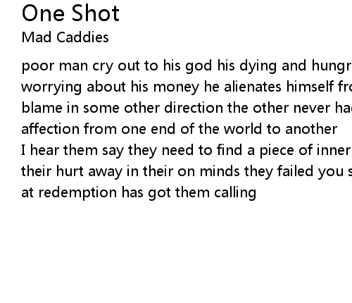 | I hear them say they need to find a piece of inner protection a remedy to take their hurt away in their on minds they failed you see them fallen one shot left at redemption has got them calling |