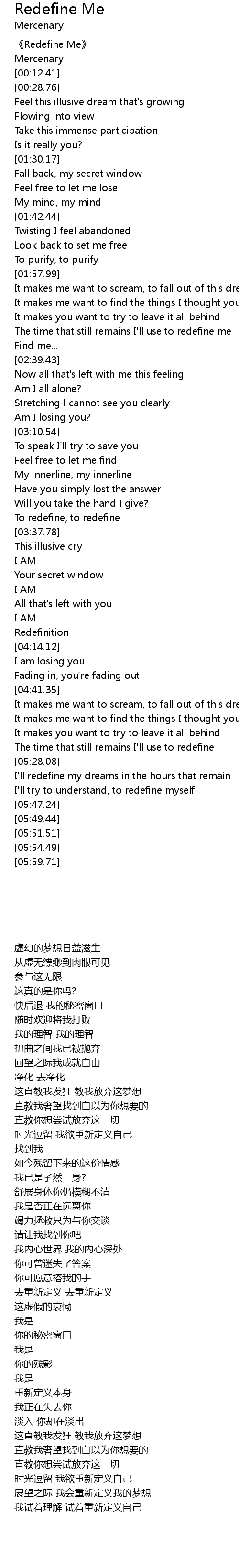| [00:01.04] | 《Redefine Me》 |