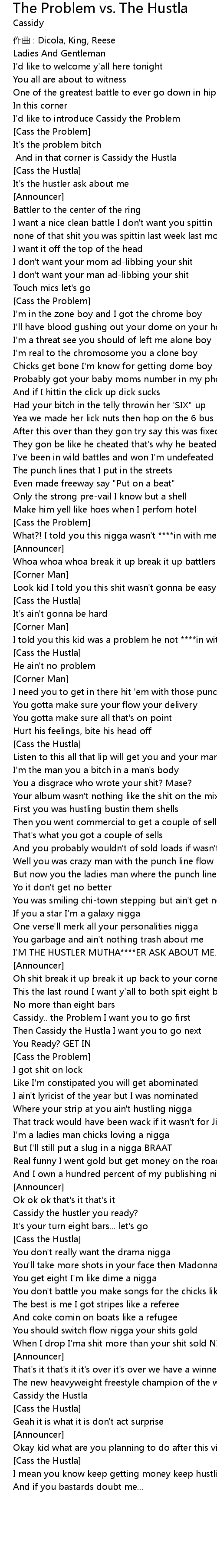 | [A] And in that corner is Cassidy the Hustla | |