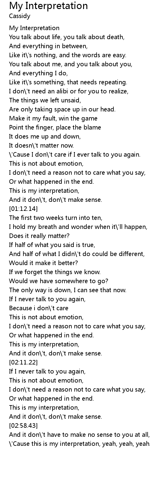 \'Cause this is my interpretation, yeah, yeah, yeah. |