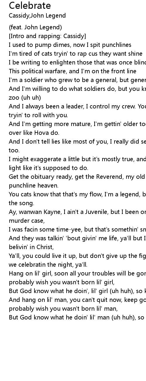 Ya'll, you could live it up, but don't give up the fight, ya'll, we elevatin, so we celebratin the night, ya'll. |