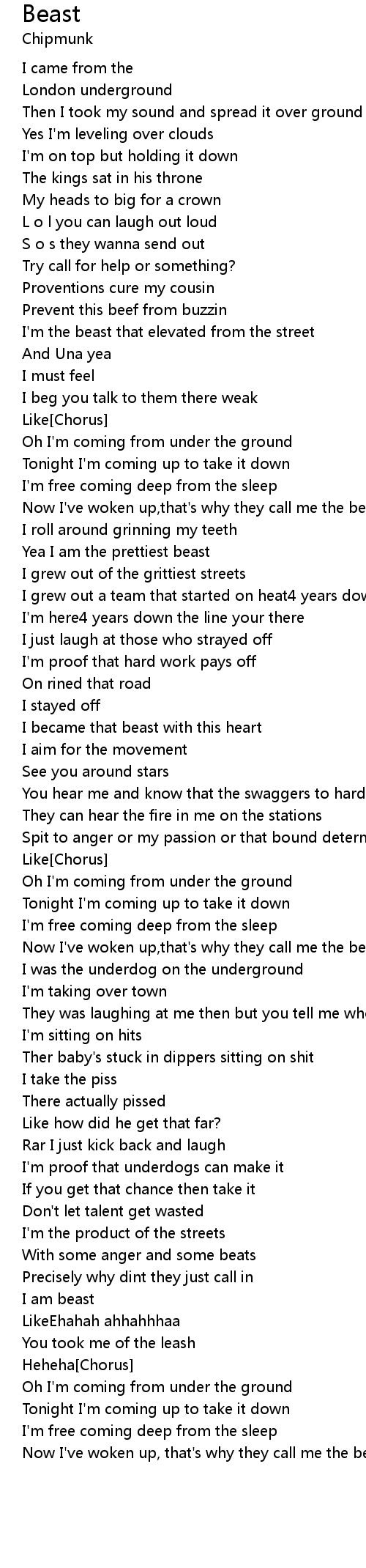 Now I've woken up, that's why they call me the beast baby get to know [x2] |