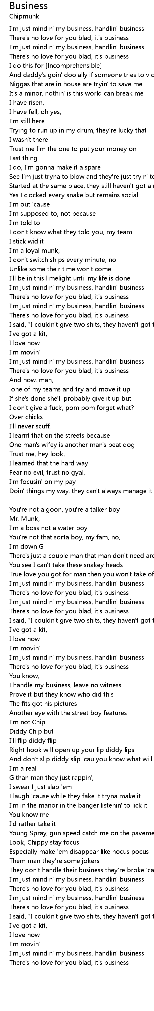There's no love for you blad, it's business |