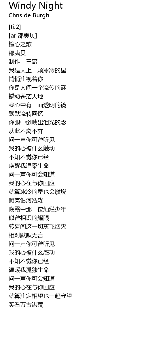 | [00:02.29] | 镜心之歌 |