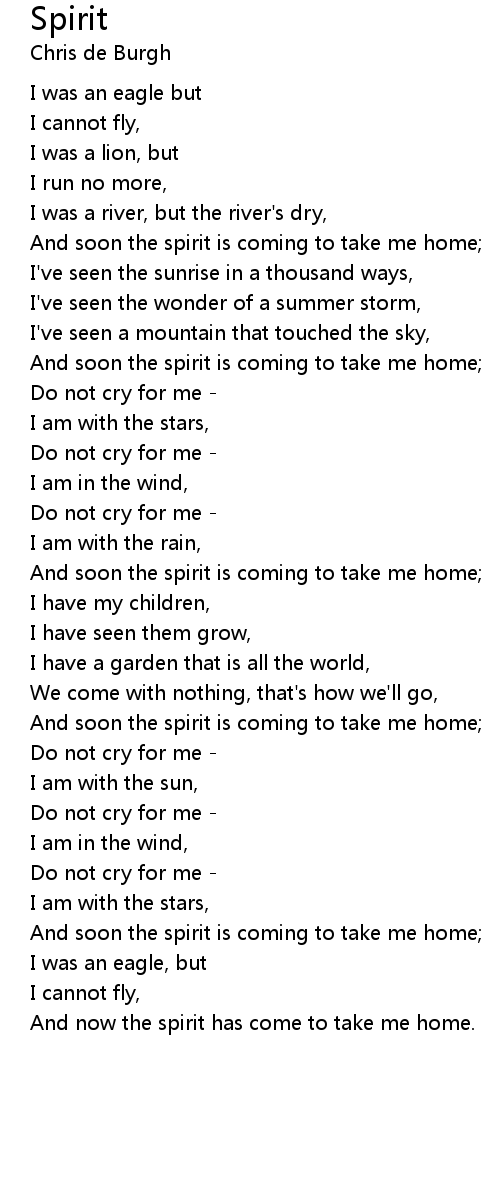 And now the spirit has come to take me home. |