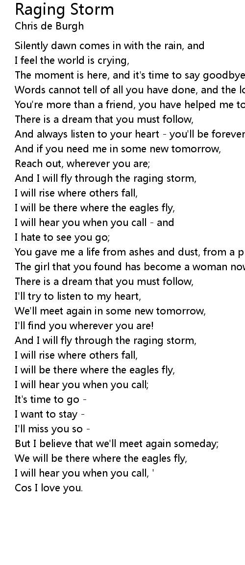 And I will fly through the raging storm, |