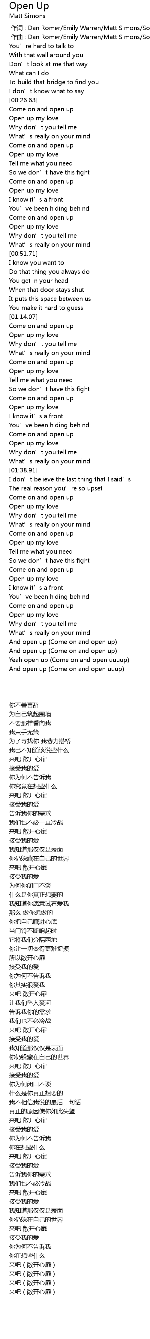 | [02:25.79] | And open up Come on and open up |