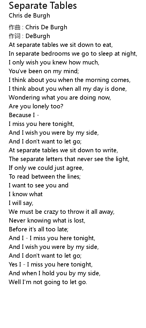 | In separate bedrooms we go to sleep at night, | |