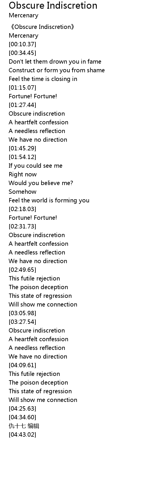| [03:53.70] | Obscure indiscretion |