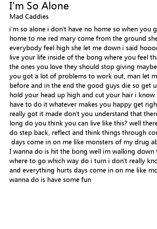 i'm so alone i don't have no home so when you gonna bring your sweet love on home to me red mary come from the ground she take away everything she make everybody feel high she let me down i said hoooooooooo nanana etc. well you can live your life inside of the bong where you feel that nothing's wrong and tell the ones you love they should stop giving maybe your life ain't worth living so you got a lot of problems to work out, man let me tell you, i've read this book before and in the end the good guys die so get up, get up get out of you chair hold your head up high and cut your hair i know what your thinking but you just have to do it whatever makes you happy get right to it so you think you've really got it made don't you understand that there is much more at stake how long do you think you can live like this? well there is only one thing left to do step back, reflect and think things through compare yourself to me, im just like you [chorus] days come in on me like monsters of my drug abuse and all |