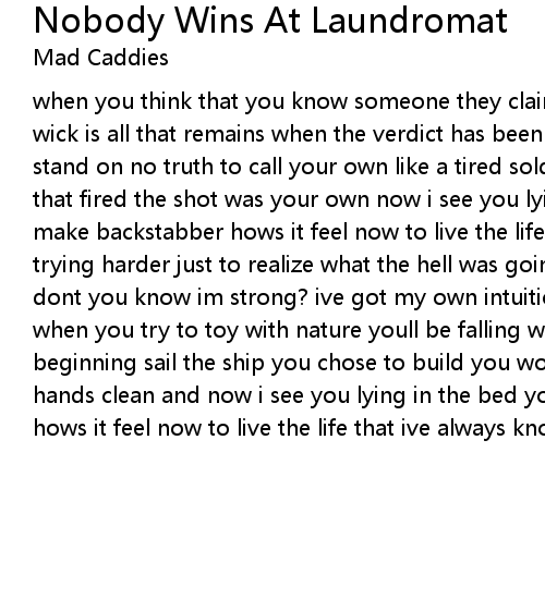 when you think that you know someone they claim to be your friend a blackened wick is all that remains when the verdict has been sent with no legs left to stand on no truth to call your own like a tired soldier slowly dying the gun that fired the shot was your own now i see you lying in the bed you chose to make backstabber hows it feel now to live the life i've always known was fake trying harder just to realize what the hell was goin on i saw you in the shadows dont you know im strong? ive got my own intuitions ive got my own beliefs and when you try to toy with nature youll be falling with the leaves and now its all beginning sail the ship you chose to build you wont see me crying washed my hands clean and now i see you lying in the bed you chose to make backstabber hows it feel now to live the life that ive always known was fake