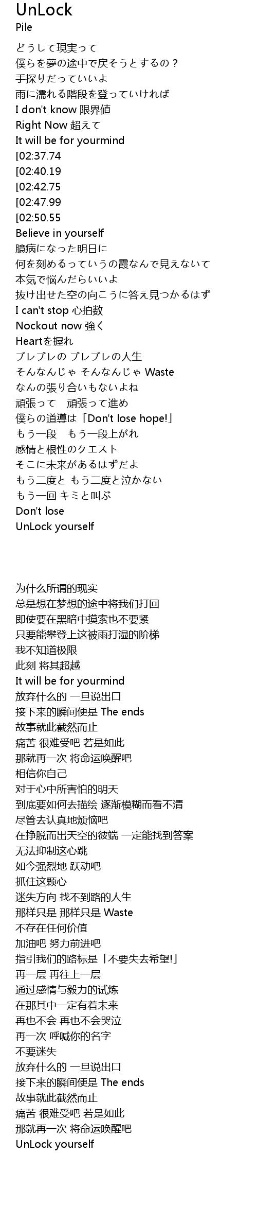 | [02:54.06] | UnLock yourself |
