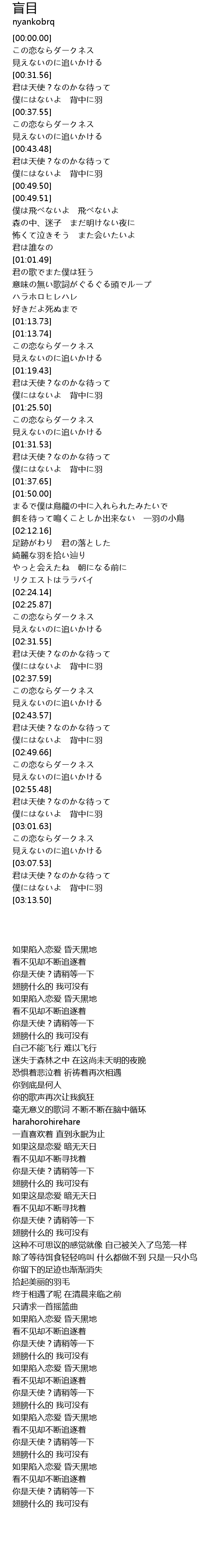 | [00:31.57] | 君は天使?なのかな待って |