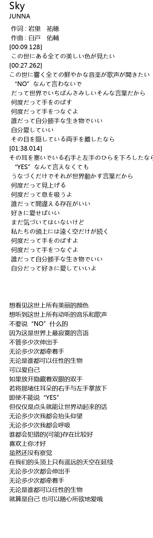 | [01:38.014] | その耳を塞いでいる右手と左手のひらを下ろしたなら |