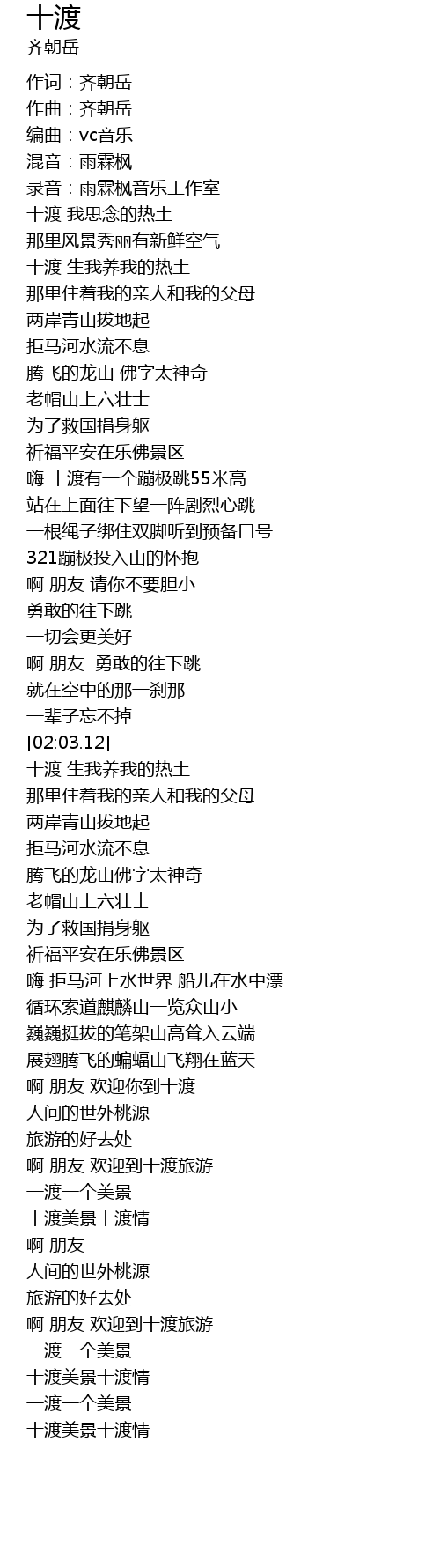 | [03:50.10] | 啊 朋友 欢迎到十渡旅游 |