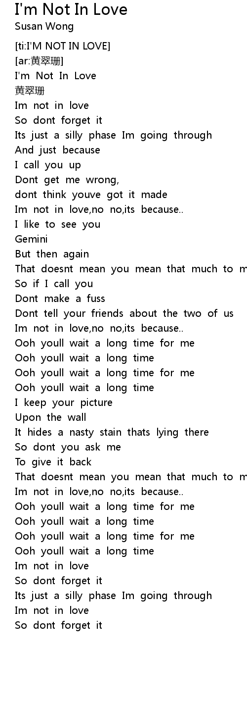 | [00:02.214] | I' m Not In Love |