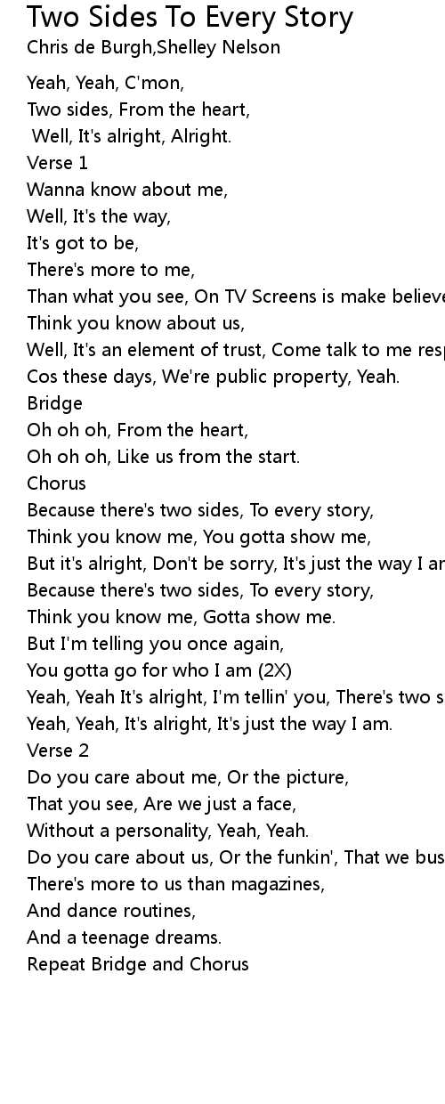 Yeah, Yeah It's alright, I'm tellin' you, There's two sides, |