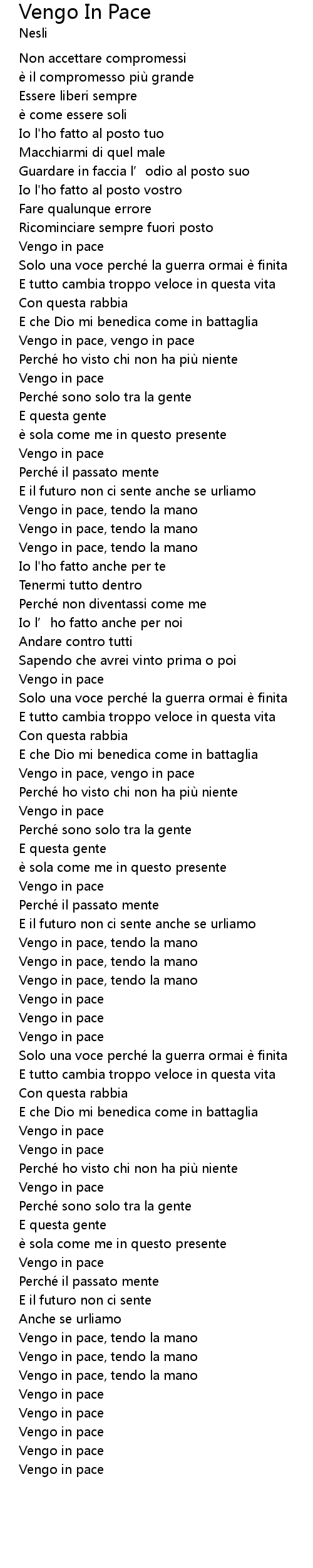 | Song | Vengo In Pace |
