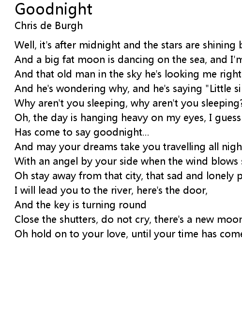 Oh hold on to your love, until your time has come to say... goodnight. |