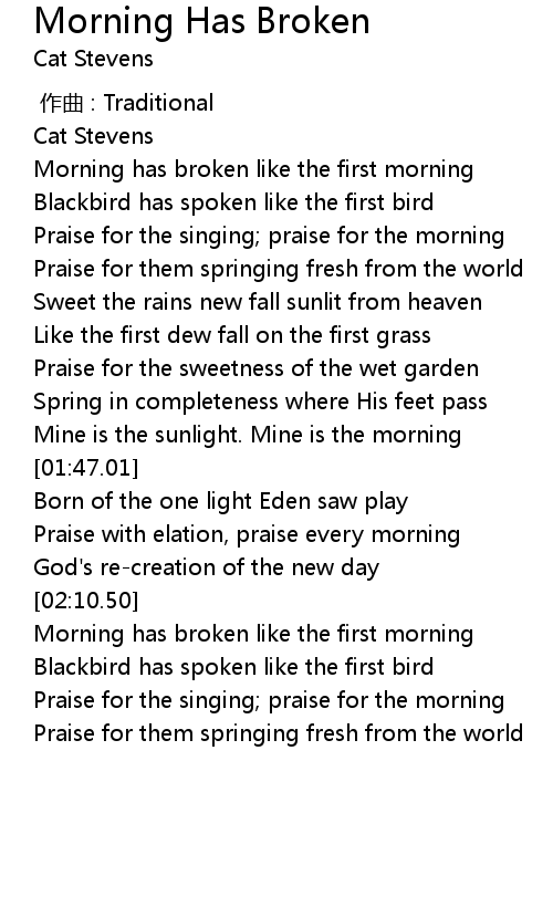 | [02:40.32] | Praise for the singing; praise for the morning |