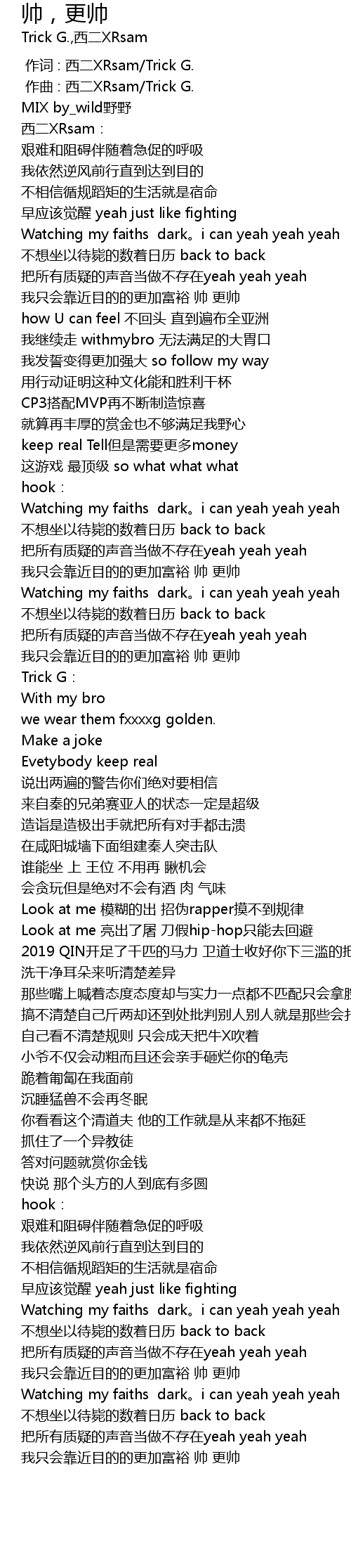 | [00:00.000] | 作词 : 西二XRsam/Trick G. |