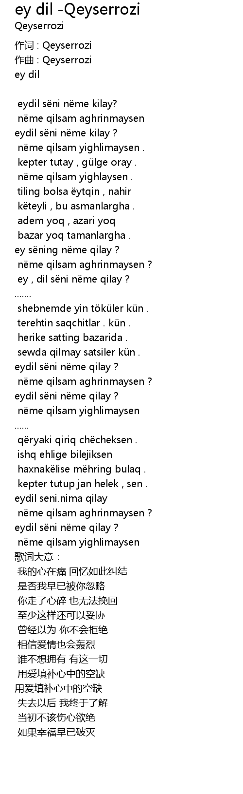 | ey , dil sëni nëme qilay ? | |