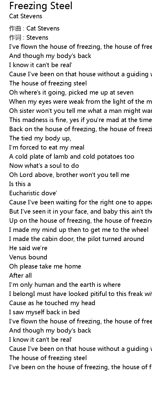 | I've been on the house of freezing, the house of freezing steel |