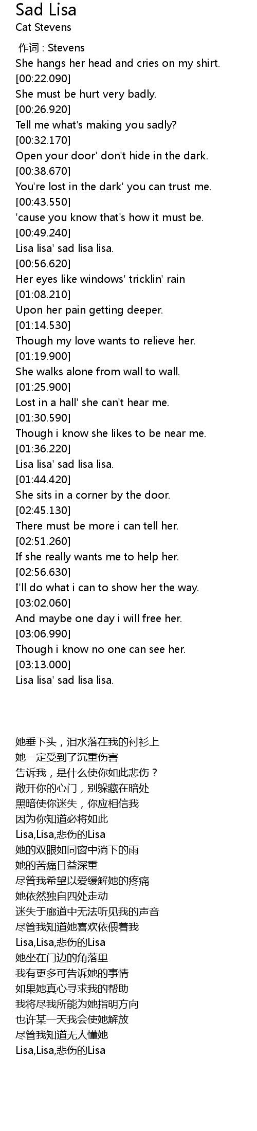 | [03:16.430] | Lisa lisa' sad lisa lisa. |