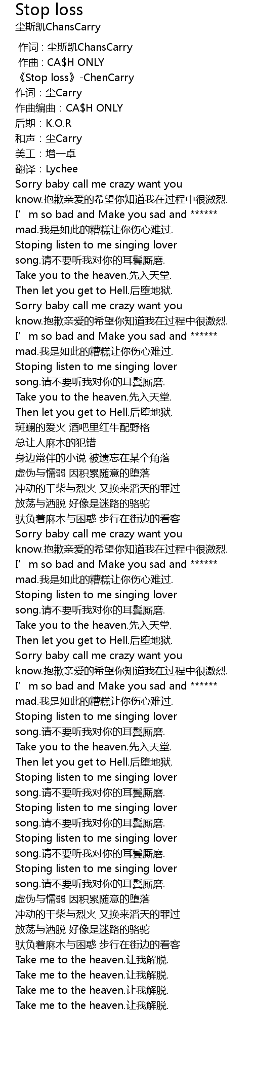 | [00:04.665] | 《Stop loss》-ChenCarry |