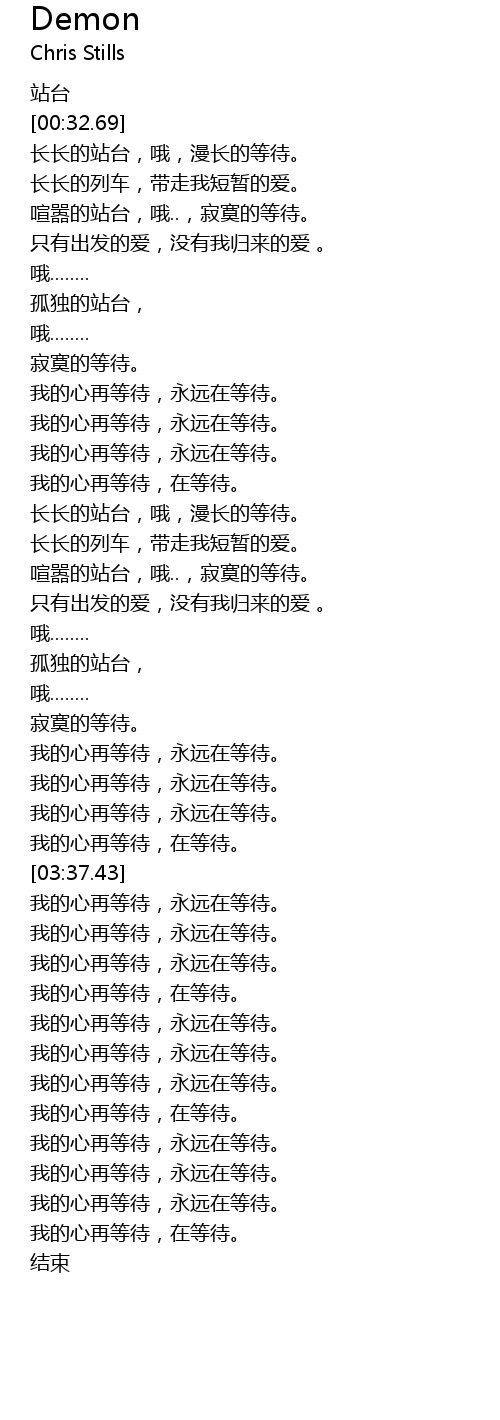 | [03:22.63] | 我的心再等待,在等待。 |