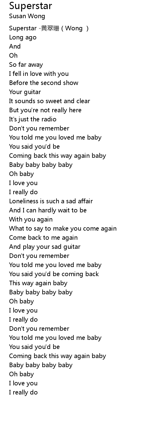 | [00:00.00] | Superstar -黄翠珊(Wong ) |