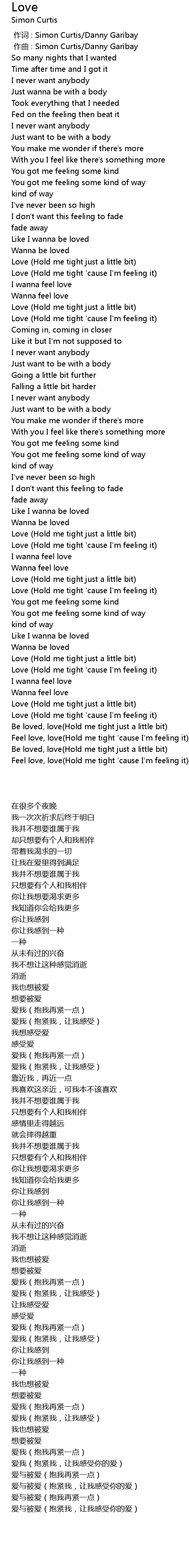 | [02:23.460] | Love (Hold me tight 'cause I'm feeling it) |