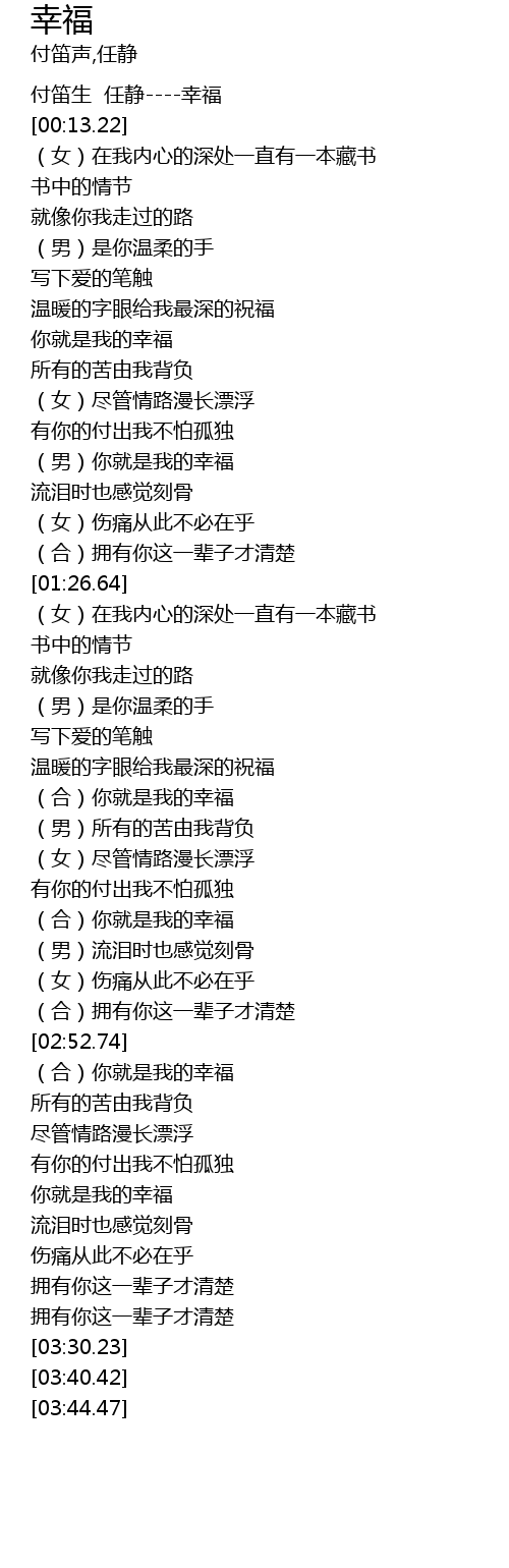 | [00:11.41] | 付笛生 任静----幸福 |