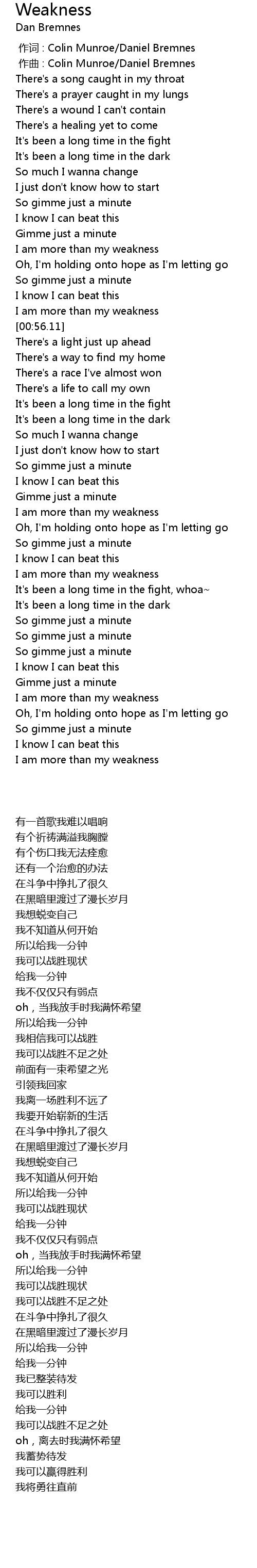 | [00:00.000] | zuò cí : Colin Munroe Daniel Bremnes |