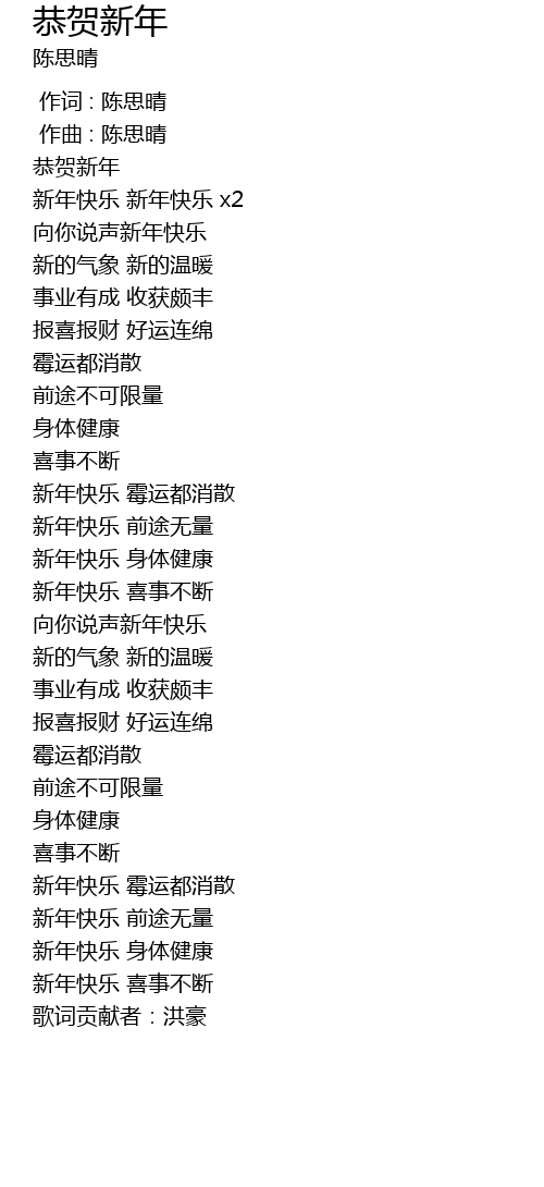 | [00:23.00] | 新年快乐 新年快乐 x2 |