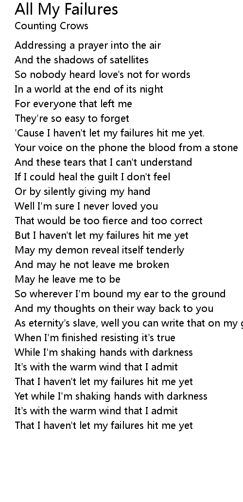 'Cause I haven't let my failures hit me yet. |