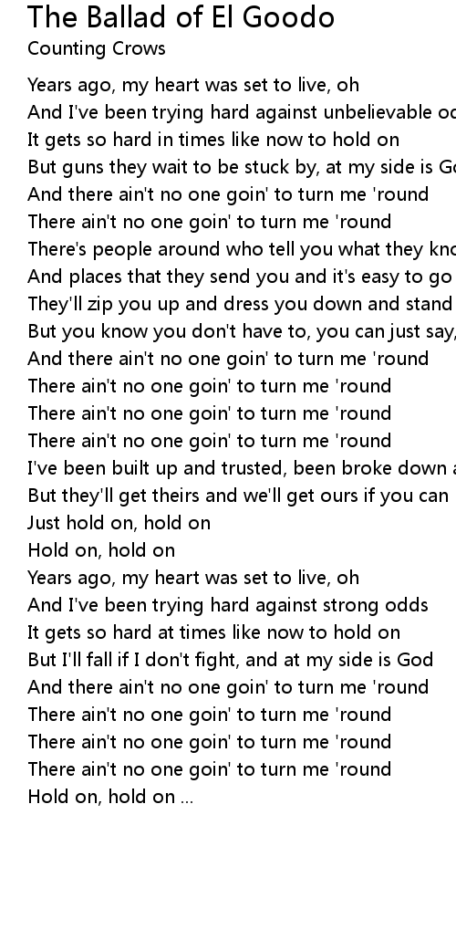 And there ain't no one goin' to turn me 'round |