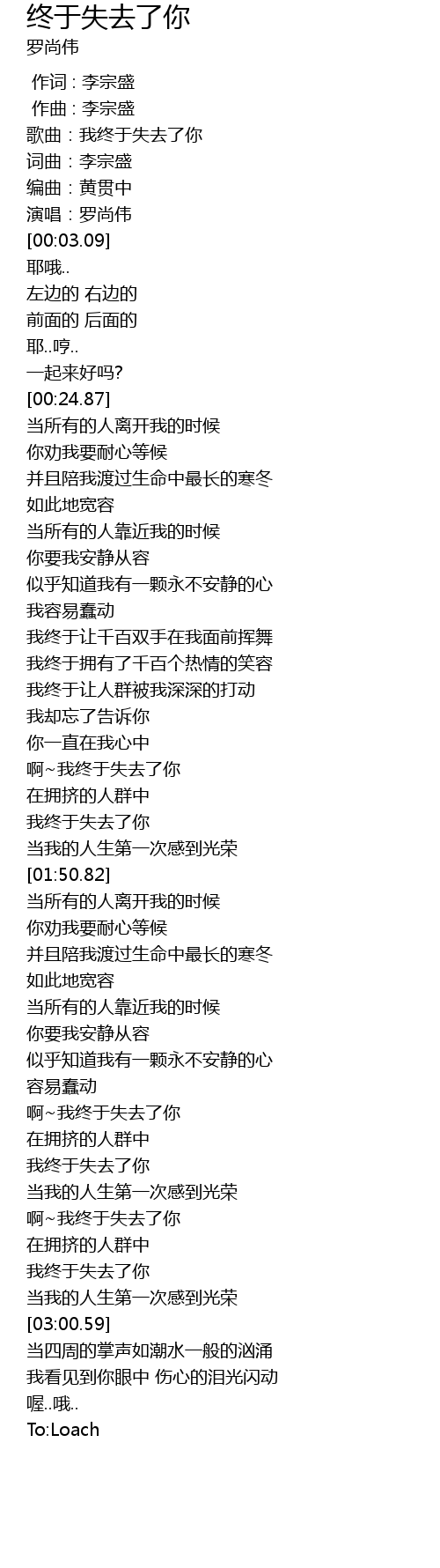 | [00:00.00] | 歌曲:我终于失去了你 |