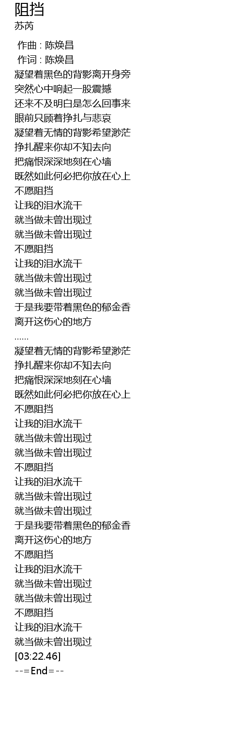 | [02:23.68] | bù yuàn zǔ dǎng |