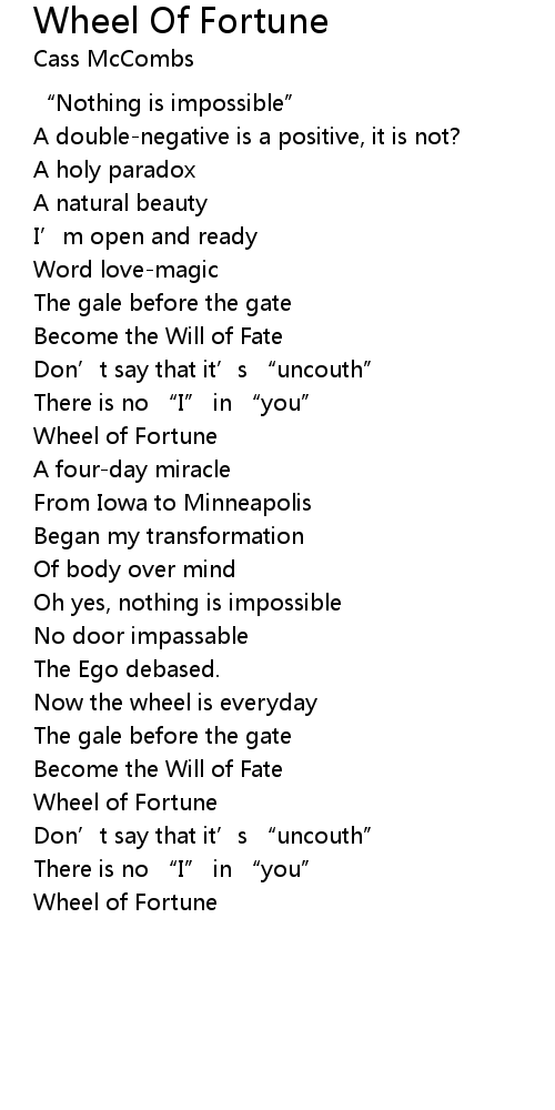 | Song | Wheel Of Fortune |