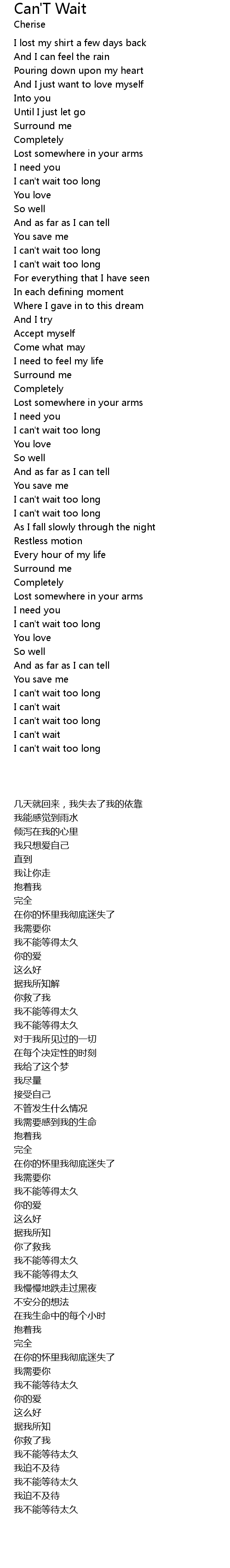 Can'T Wait Lyrics