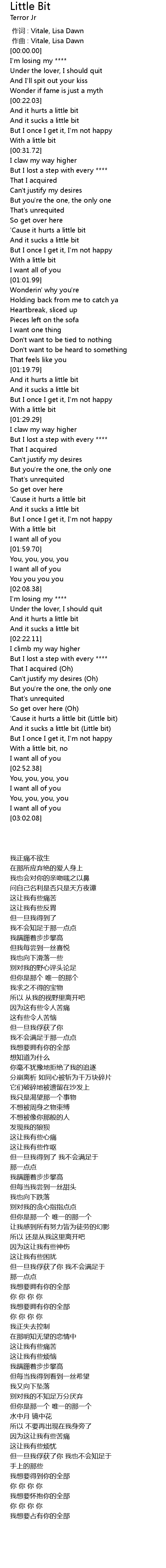 | [02:41.39] | ' Cause it hurts a little bit Little bit |