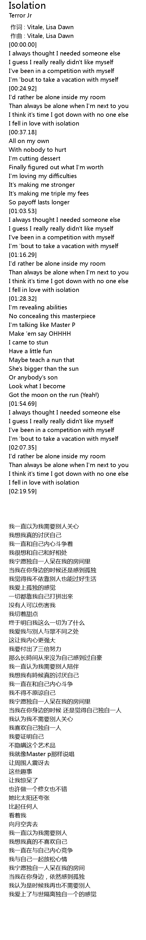 | [00:34.74] | I fell in love with isolation |