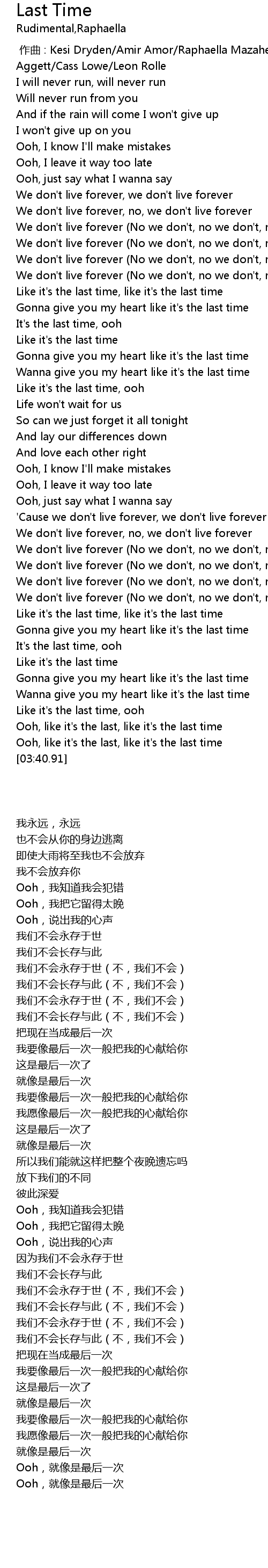 | [02:40.23] | We don' t live forever No we don' t, no we don' t, no we don' t |