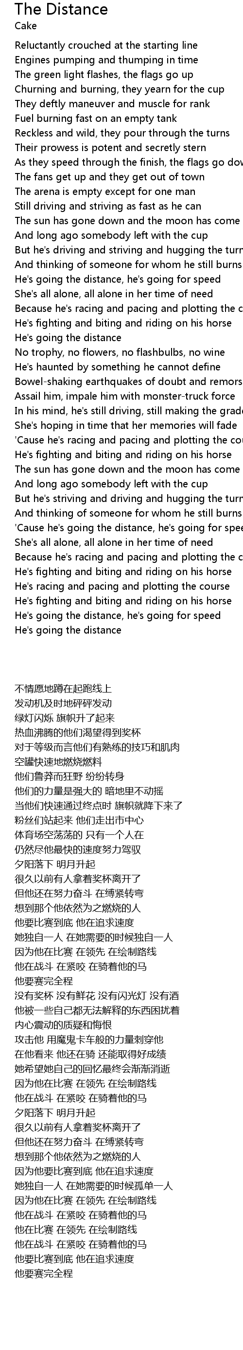 'Cause he's going the distance, he's going for speed |